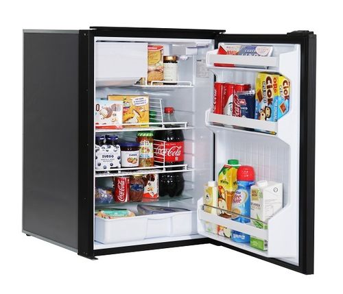 Cruise 130 is a 130 liter INDEL B 12/24VDC refrigerator for motorhomes with a freezer compartment, two vinyl-covered shelves, a glass-enclosed shelf and an integrated vegetable rack. Even the door has three shelves. The refrigerator is equipped with an adjustable thermostat, interior light and compressor with ventilated refrigeration in the upper part of the refrigerator. Optionally it has an installation frame.