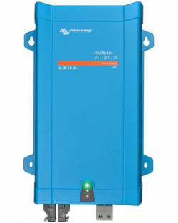 – Four-stage variable charger with wide input voltage range. The Victron Multiplus 24V 1200VA 25+16A Inverter provides a variable battery charging system that can be configured using the Victron software via the VE.Bus port.